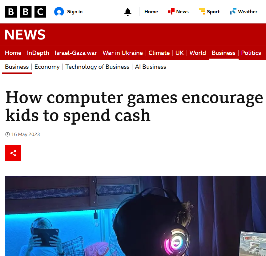 The above are selected examples, but media coverage of the research report for ‘Between Gaming and Gambling’ also included widespread international gaming press, including Eurogamer and Tarreo.